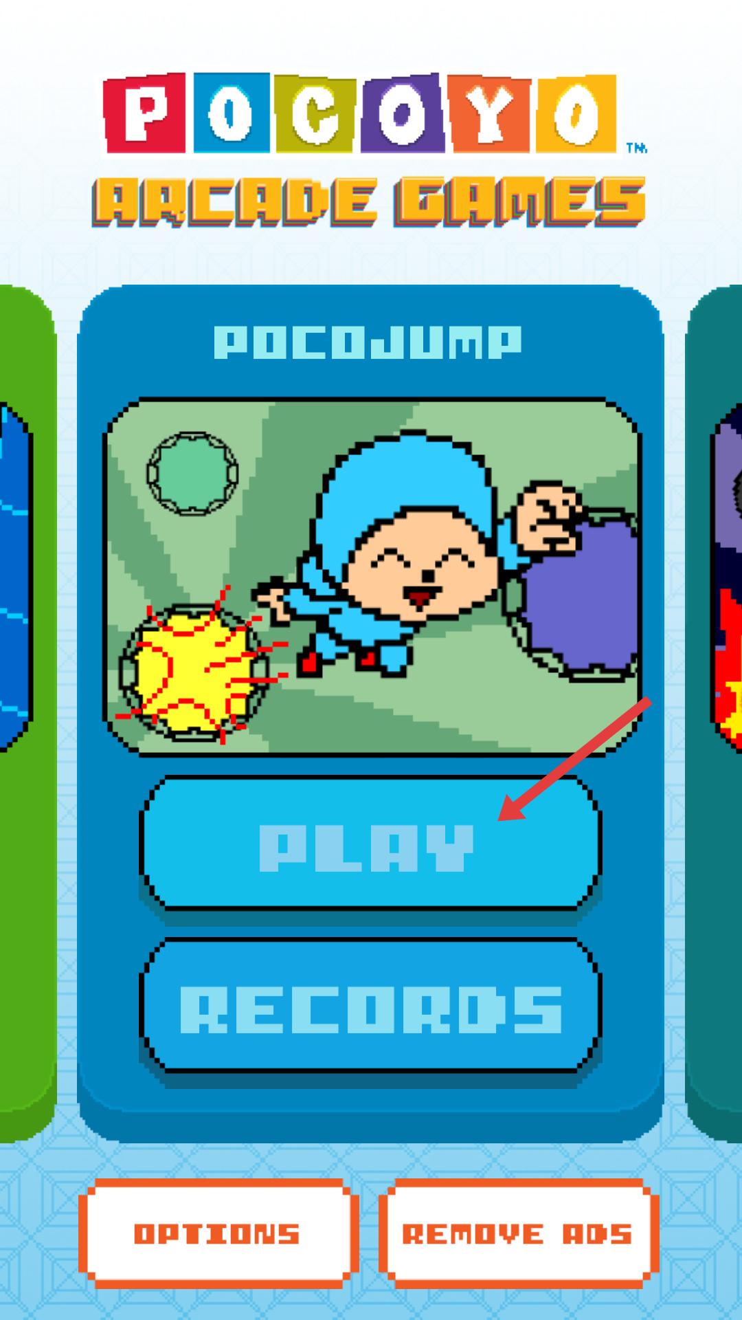 1、游戲初始界面點擊PLAY按鈕,即可進入POCOJUMP游戲,開啟跳躍挑戰之旅。
