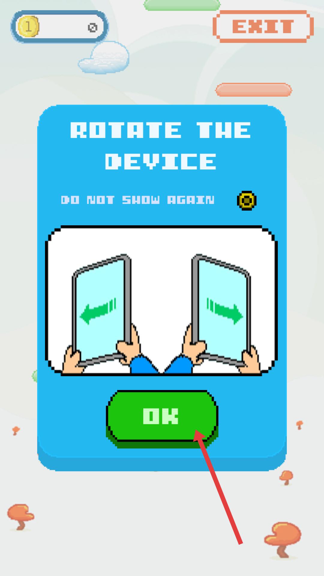 2、進入游戲前會有旋轉設備的提示,點擊OK按鈕,確認提示,準備開始游戲操作。
