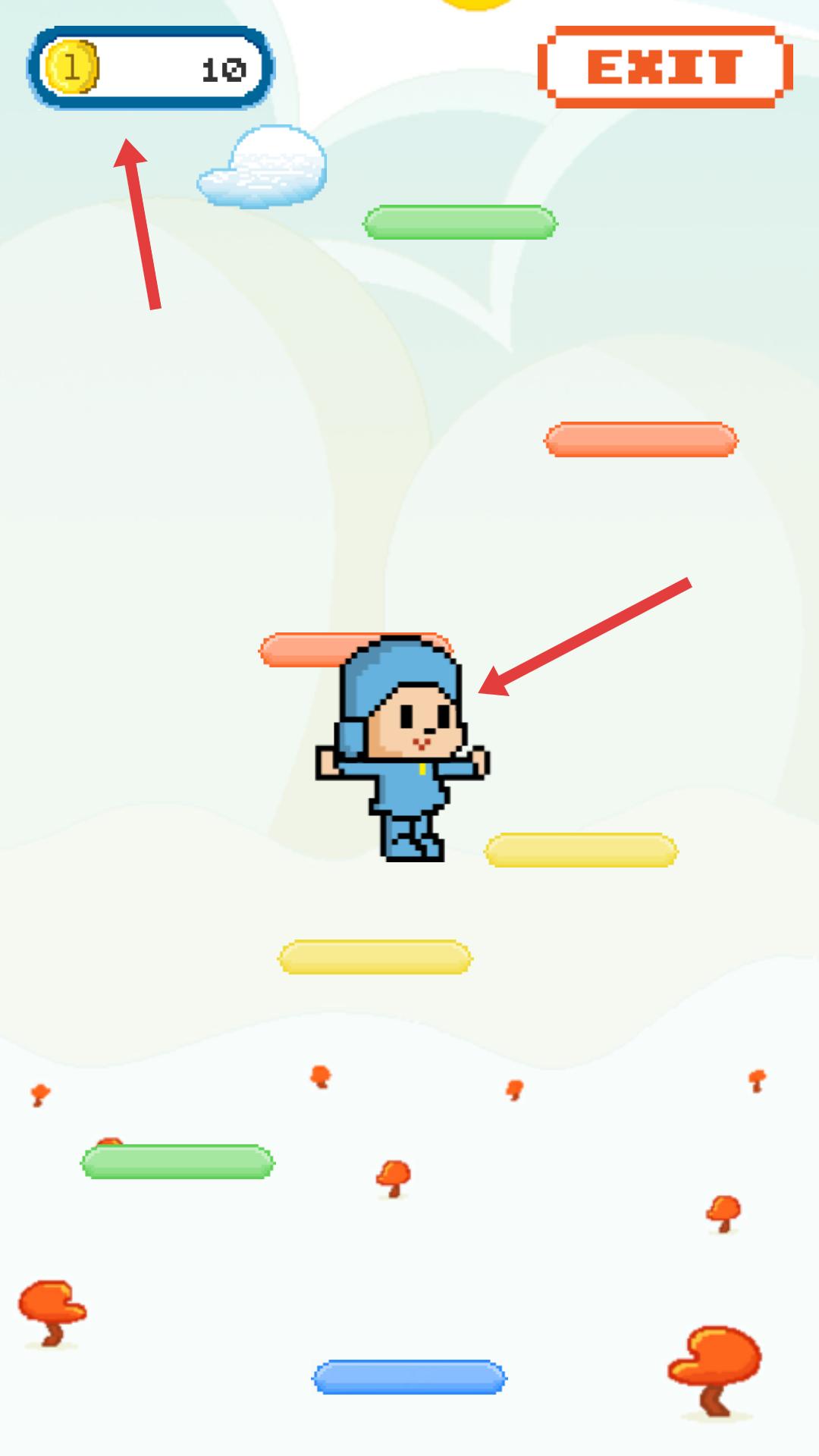 2、Pocojump挑戰:通過快速連擊屏幕讓角色沿垂直場景持續攀高,速度會隨時間逐步提升,考驗反應速度。