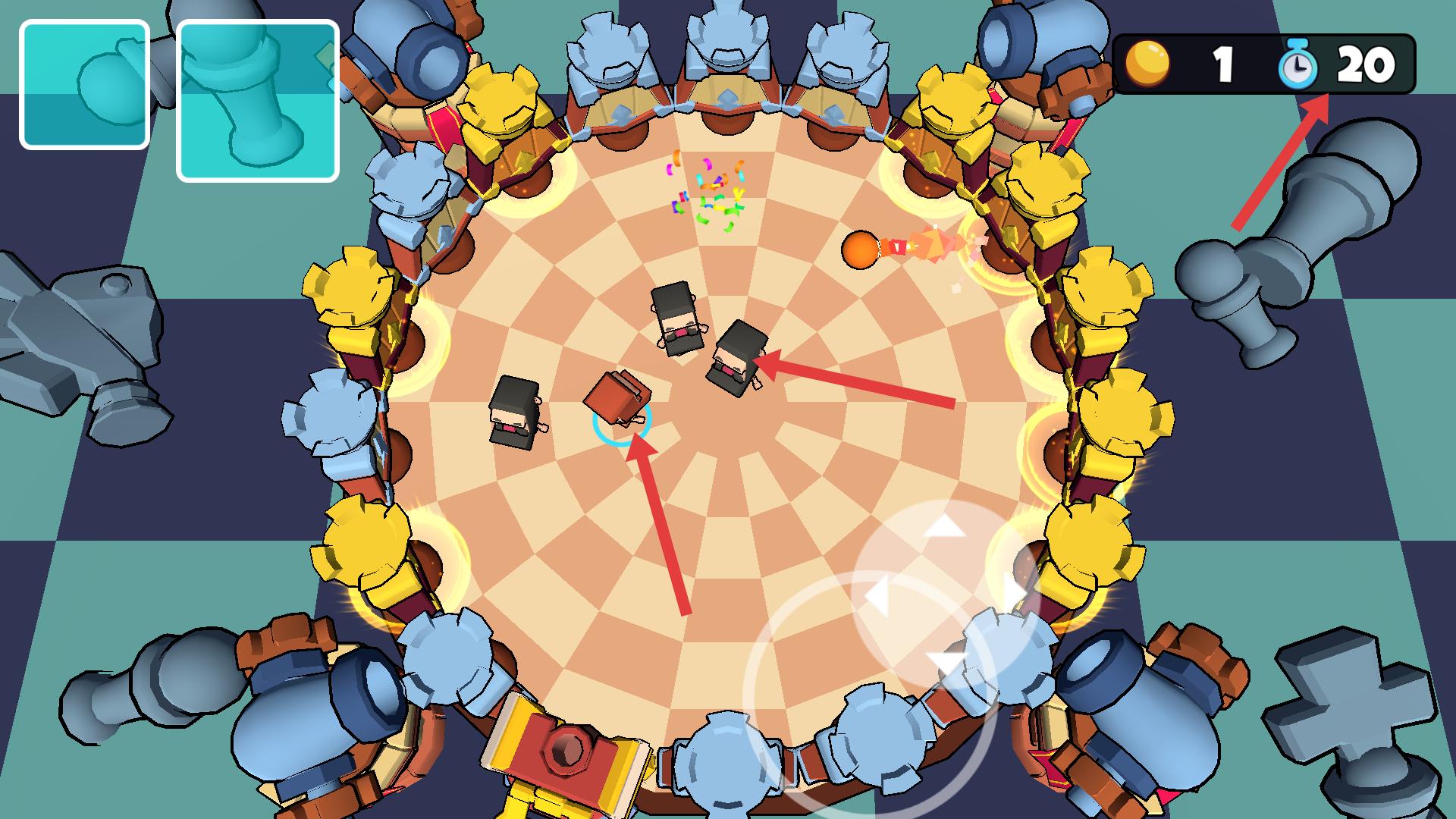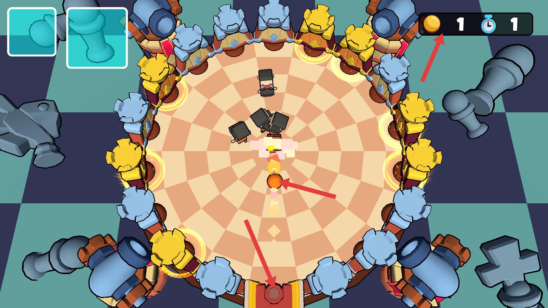 2、進入游戲要操控角色,利用場景中的道具,躲避周圍的棋子類障礙,同時躲避圓球攻擊,積累分數。