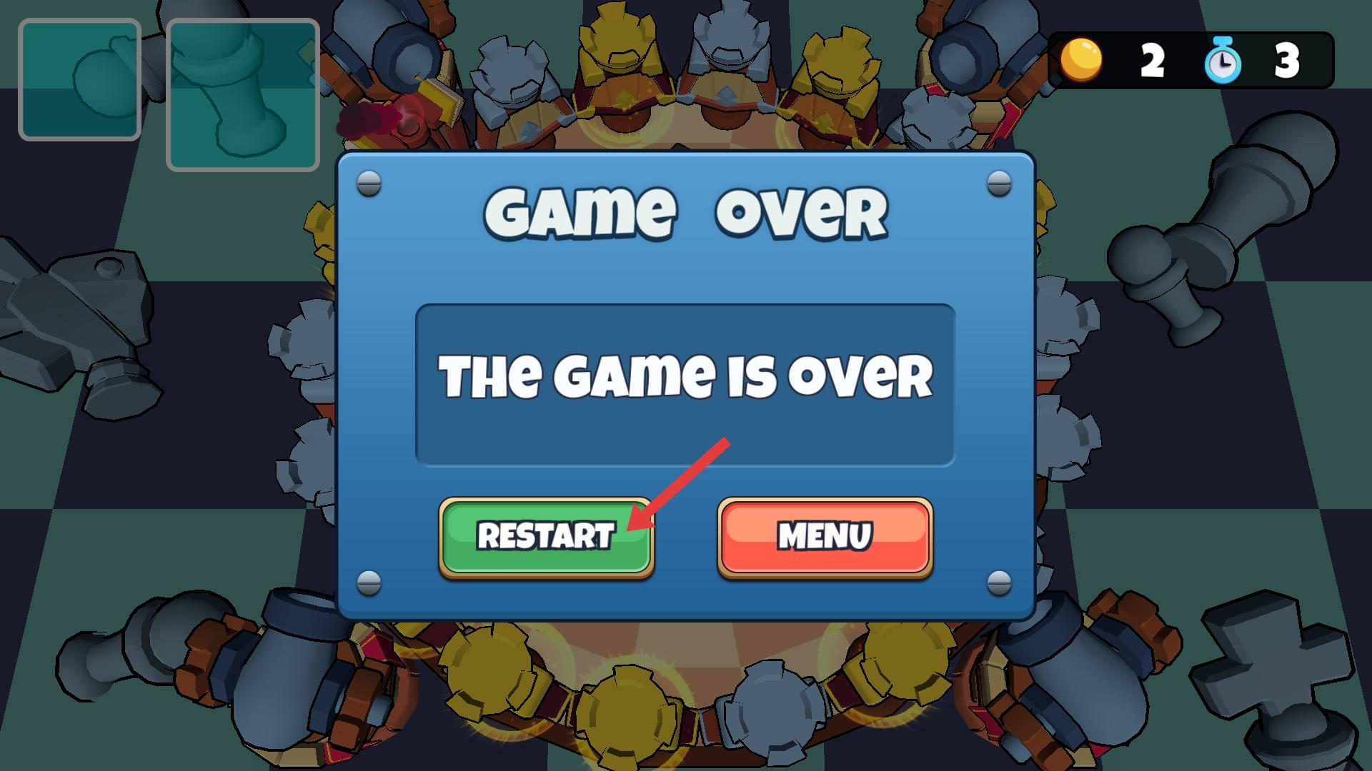 4、游戲結束會顯示結束,此時可點擊RESTART按鈕重新開始游戲,再次挑戰獲取更高分數。