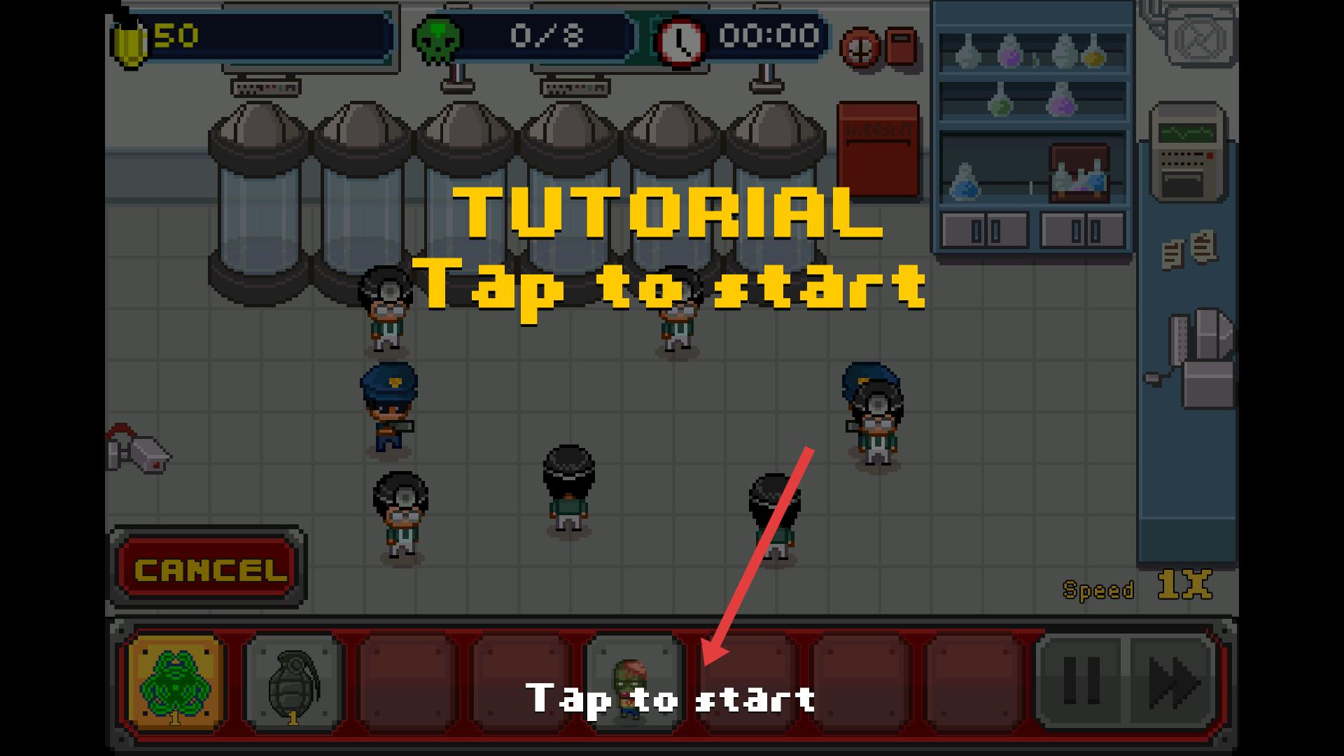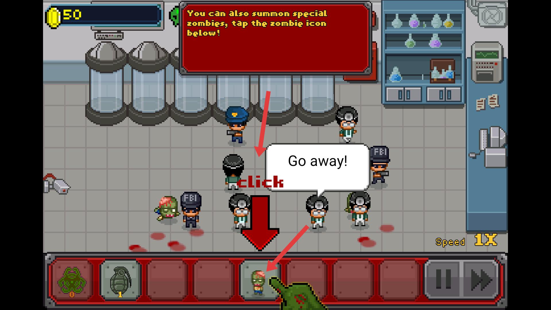 3、教程中可點擊下方僵尸圖標,召喚特殊僵尸,助力感染人類,推進游戲進程。