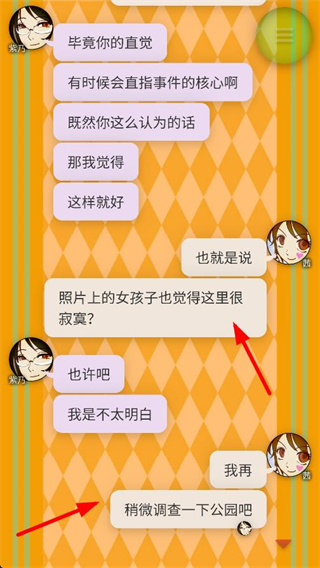 4、參與關于照片女孩的對話討論,之后選擇去調查公園的選項,推進對傳言相關線索的探索進程。