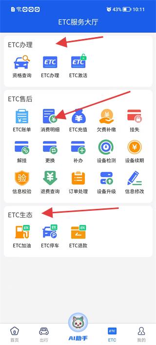 3、在ETC服務大廳查看ETC辦理、ETC激活等服務入口,以及消費明細、ETC充值等售后功能,辦理或管理ETC業務,保障高速通行便利。