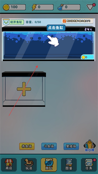 1、玩家點擊魚缸魚缸上方會顯示容量信息,注意魚缸的承載數量,避免過度養殖,留意游戲中可能出現的魚兒狀態提示。