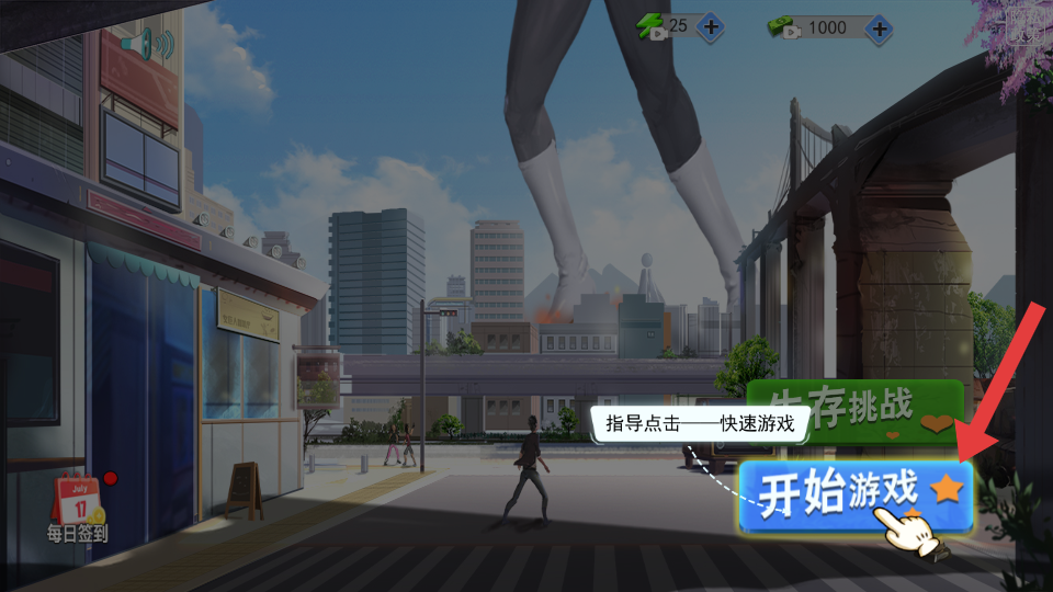 1、進入游戲后,會看到有開始游戲按鈕的界面,點擊開始游戲,即可開啟與巨人相關的逃生挑戰,準備應對后續的驚險情況。