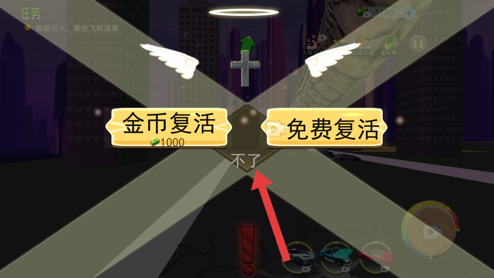 4、若在逃生過程中失敗,會出現有金幣復活和免費復活選項的界面,可根據情況選擇,繼續參與巨人逃生的挑戰。