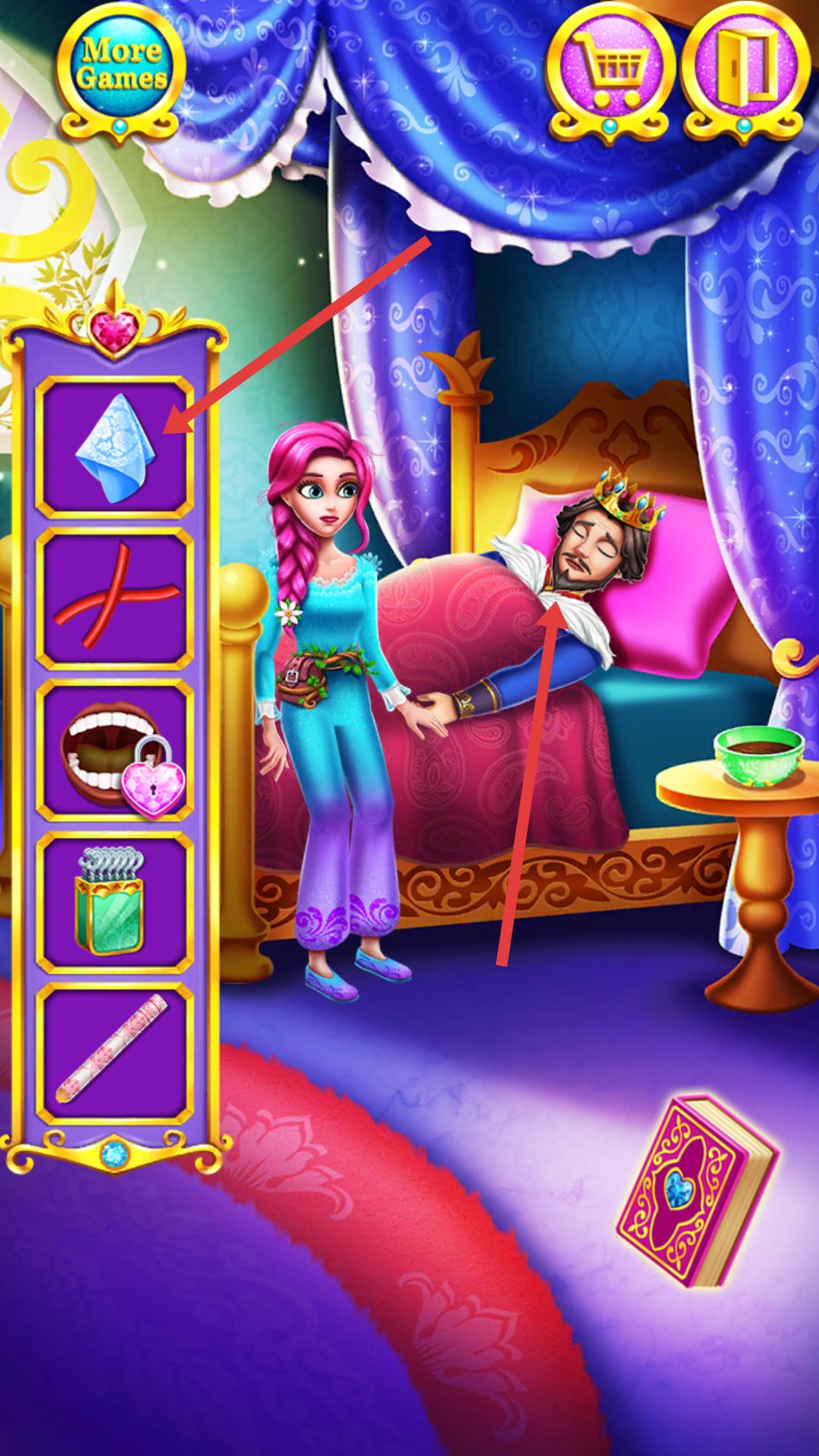 2、進入場景后面對躺在床上的國王,點擊左側道具欄中的物品,可對其使用,進行相關操作。