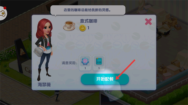 2、當客人提出想喝意式咖啡的需求時,點擊開始配餐,進入咖啡制作流程,為客人制作咖啡。