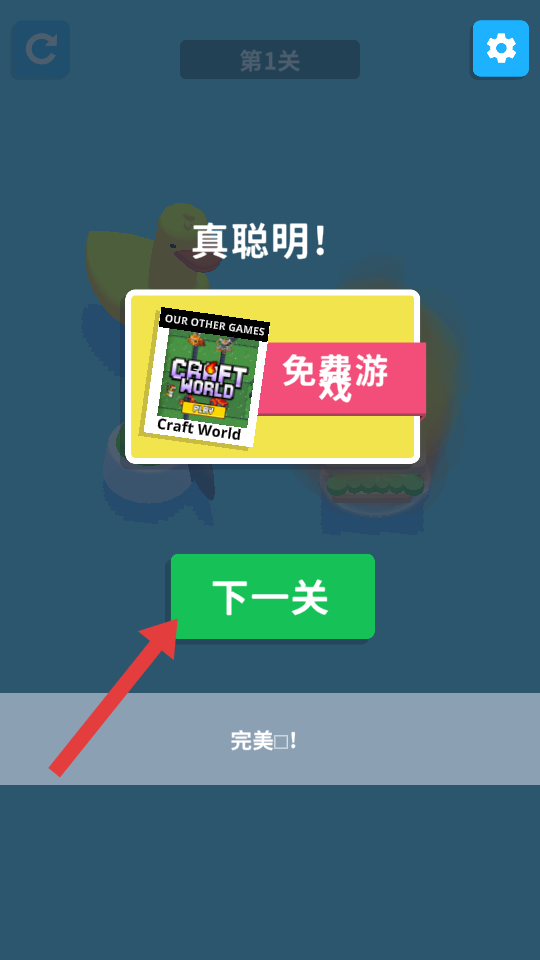 2、第1關完成后,界面顯示真聰明,點擊綠色下一關按鈕,即可進入第2關,開啟新的制作任務。