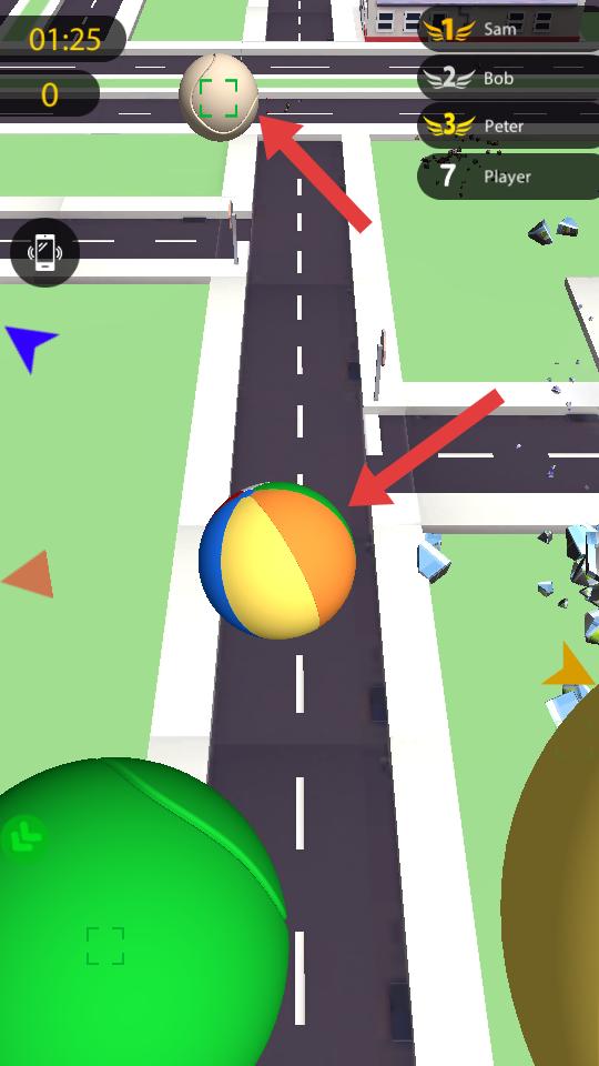 4、生存競技技巧:保持移動避免被大型球體包圍,利用街道路口實施變向擺脫,觀察小地圖預判安全區域進行戰術轉移。