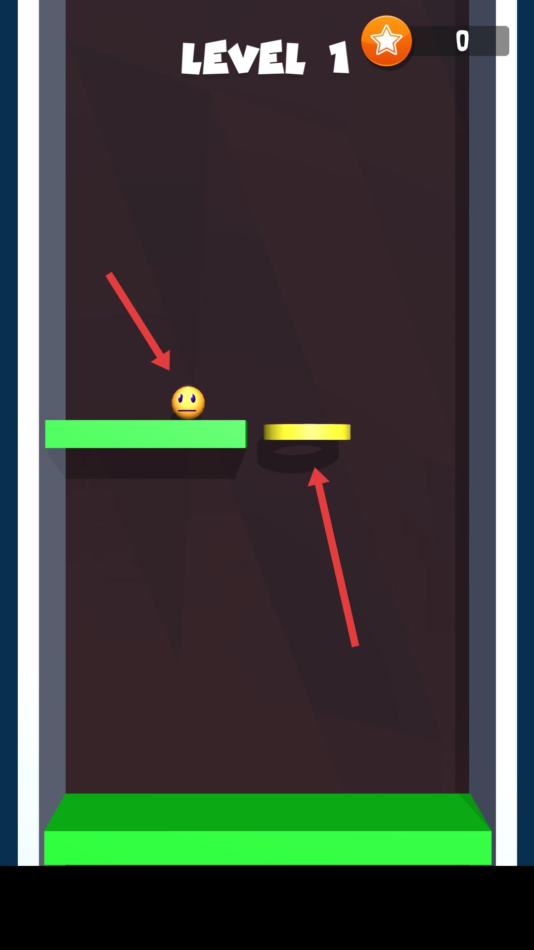 2、第一關小球在綠色平臺上,需點擊屏幕控制小球跳躍,使其進入右側管道,完成關卡目標。