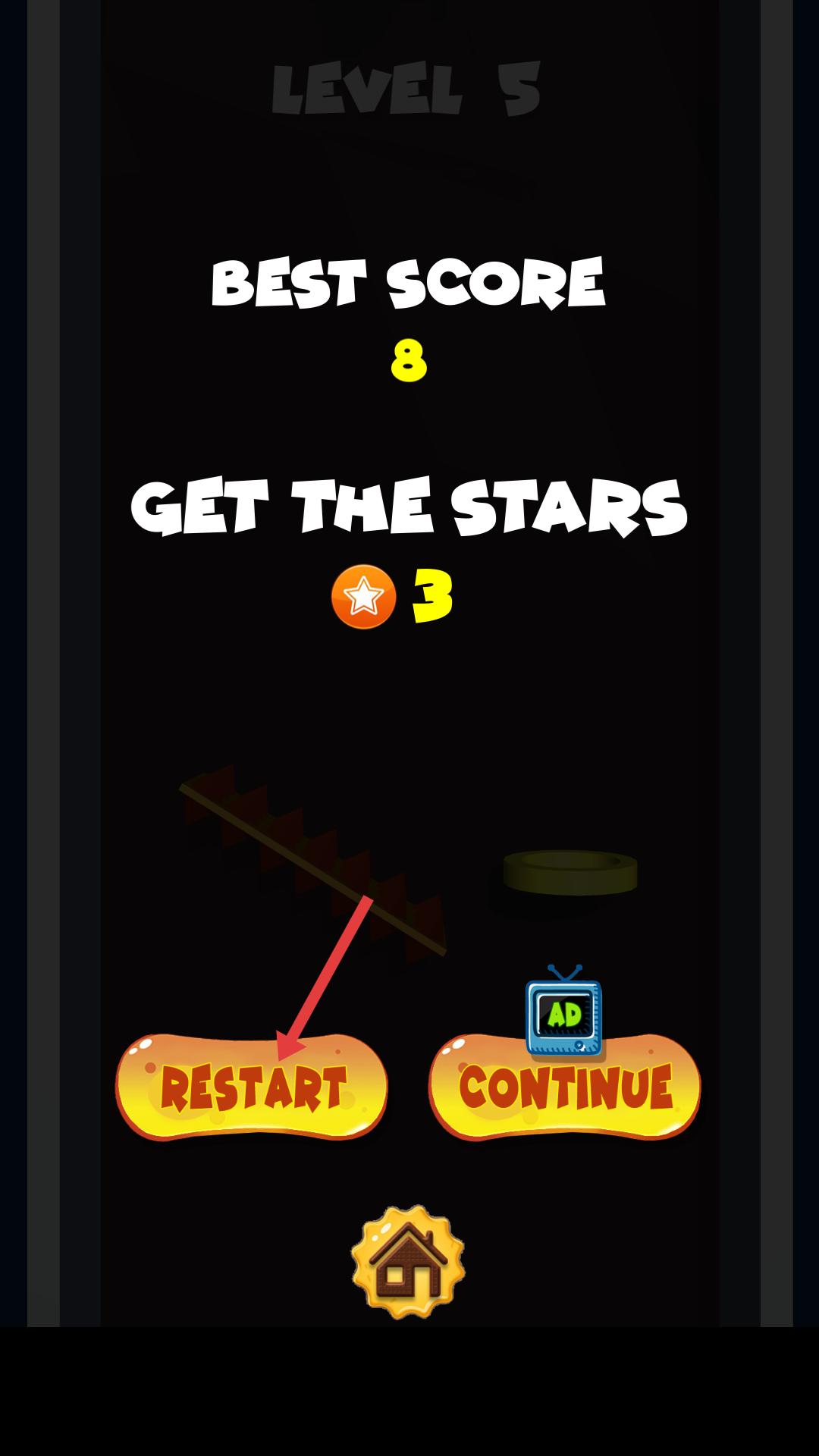 4、若關卡挑戰失敗,界面會顯示最佳得分和星星獲取數,可點擊RESTART按鈕,重新開始挑戰。