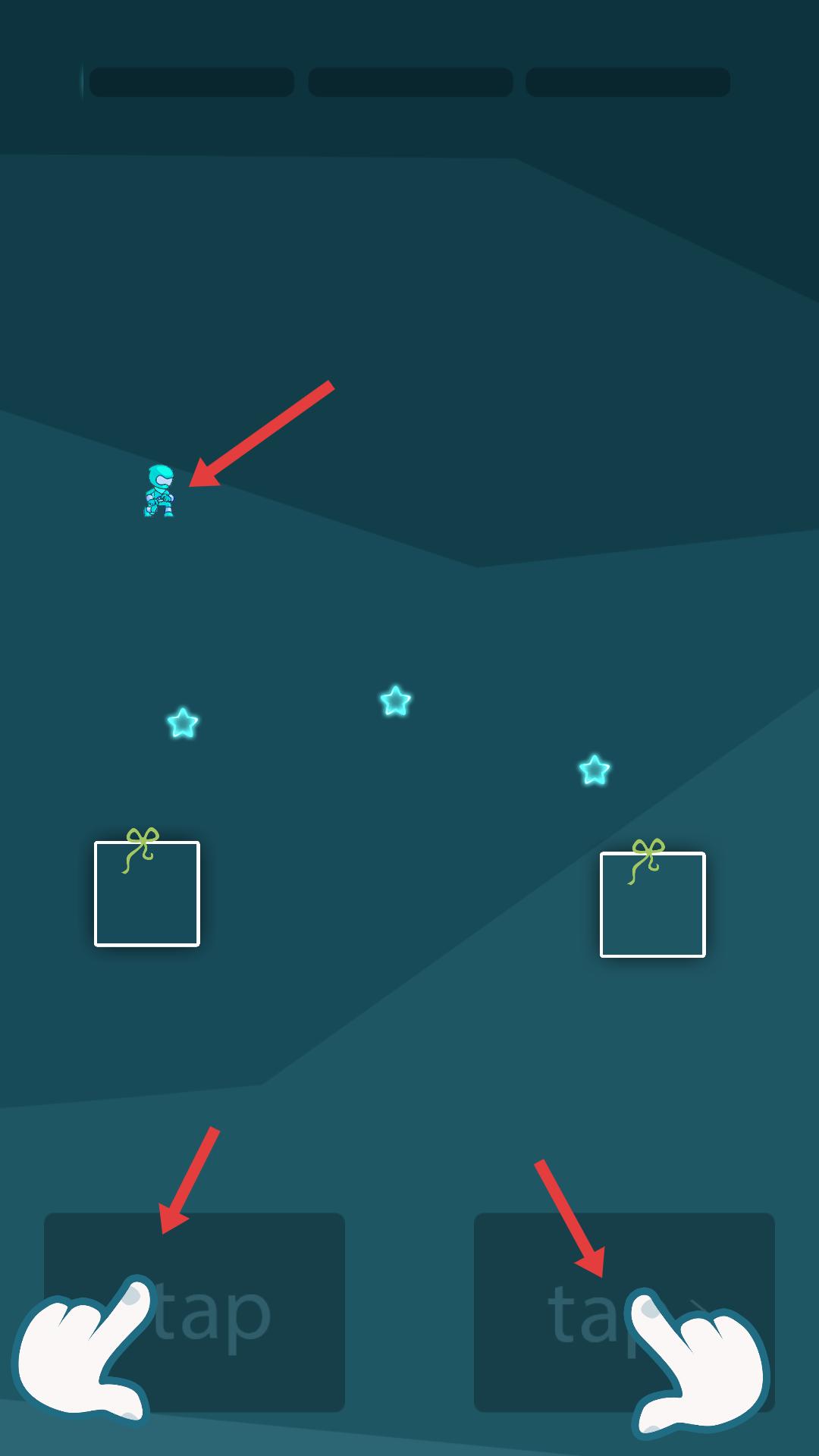 2、進入游戲后通過點擊左右tap區域,操控忍者移動,收集星星,同時注意避開障礙,向目標前進。