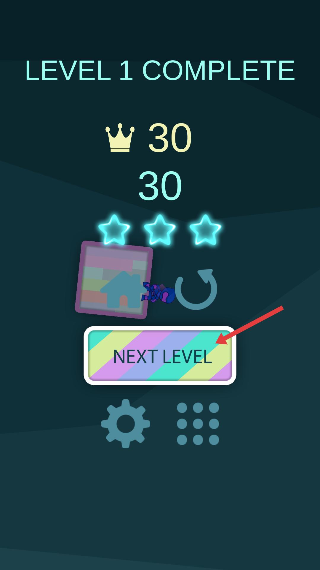 4、第一關完成后界面顯示第一關完成,可點擊下一關按鈕,進入下一關繼續挑戰。