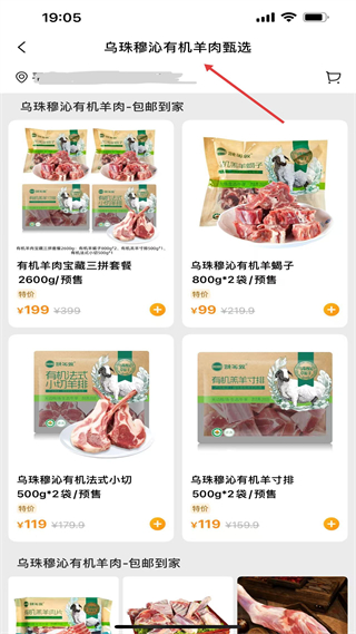 3、烏珠穆沁有機羊肉專區,展示多款羊肉產品,清晰標注預售價格與規格,點擊即可將心儀商品加入購物車。