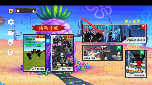 1、進入游戲模式選擇界面,可挑選沙盒建造模式等不同玩法,開啟游戲體驗。