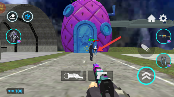 3、游戲場景中能看到友方和敵方角色,利用手中的武器,與敵方角色進行對戰。