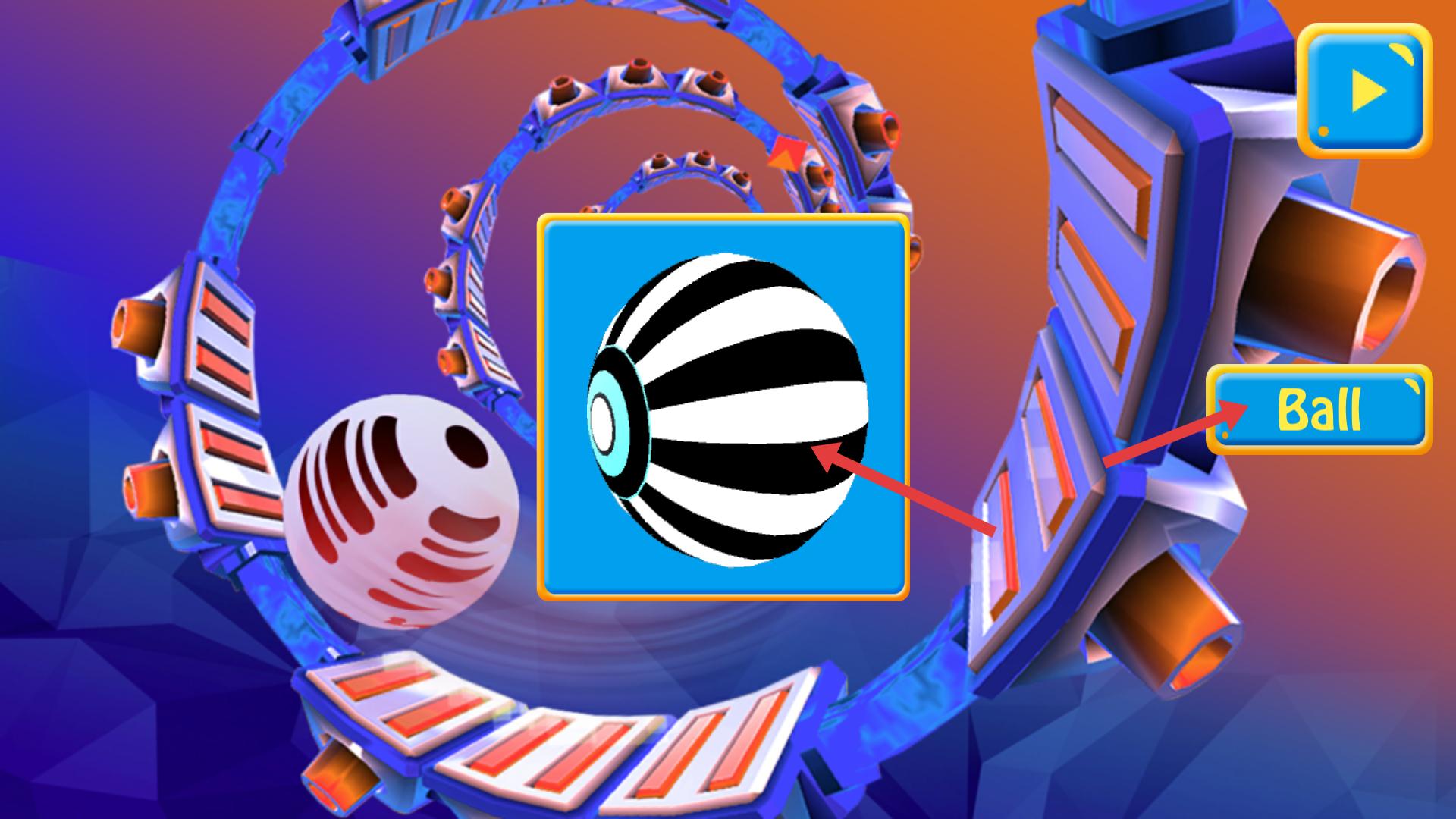 1、游戲開始前會展示小球樣式,點擊帶有三角形的按鈕,就能進入游戲,操控球在軌道中移動。