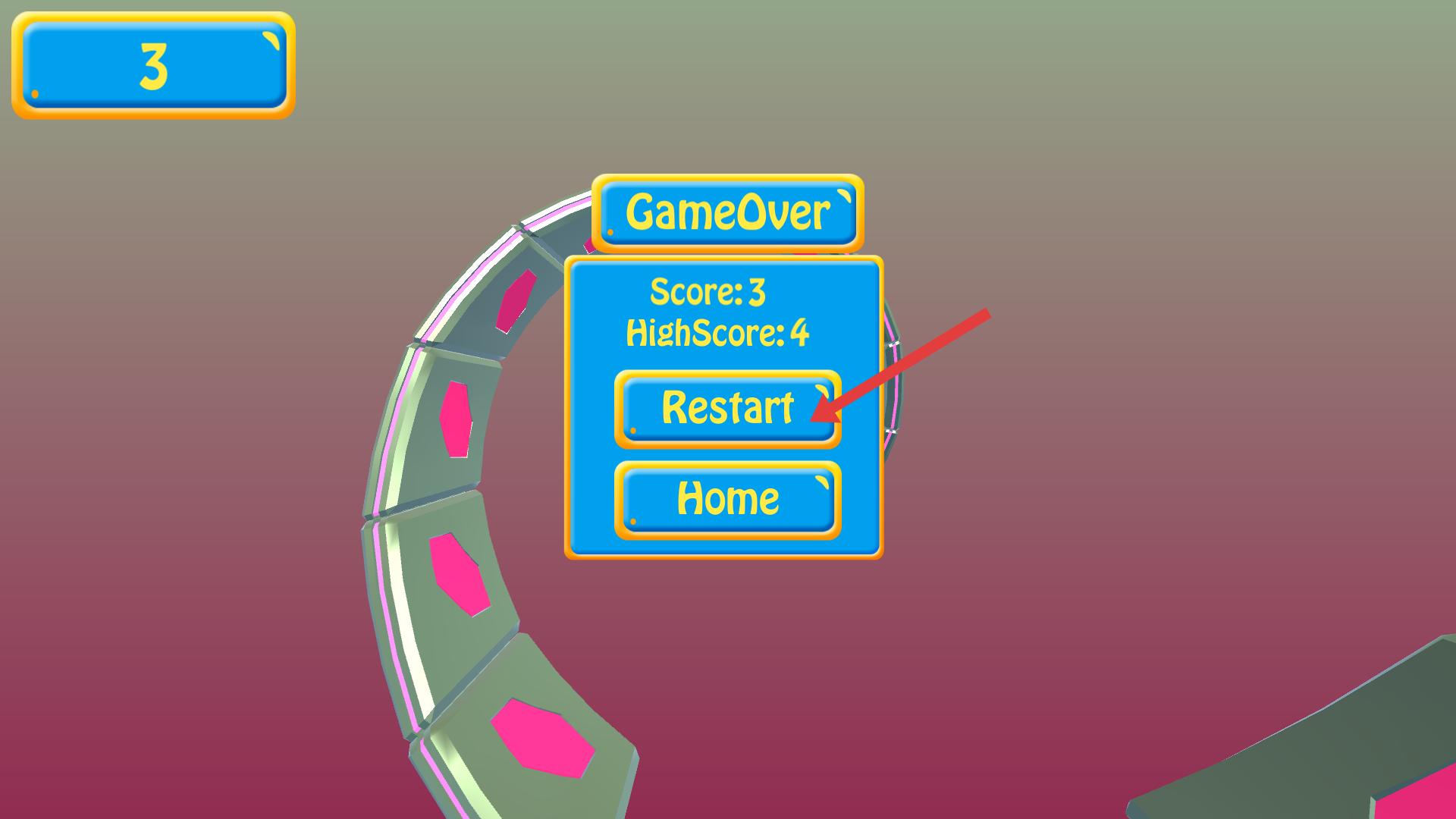 4、若游戲失敗,界面會顯示GameOver,可點擊Restart按鈕重新開始游戲,再次挑戰獲取更高分數。