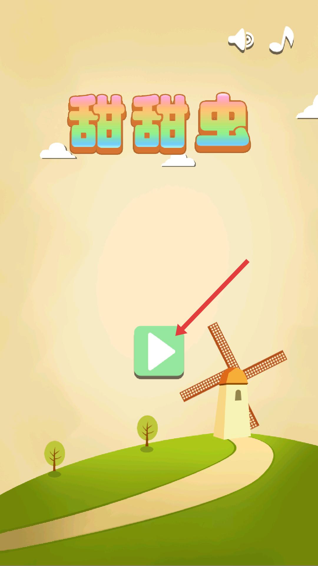 1、游戲初始界面,點擊帶有白色三角形的綠色按鈕即可進入游戲,開始操控甜甜蟲的冒險。