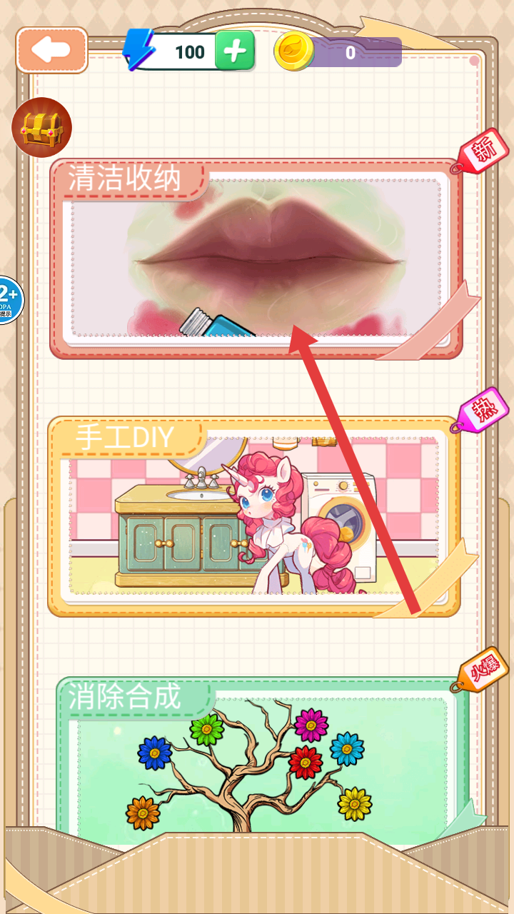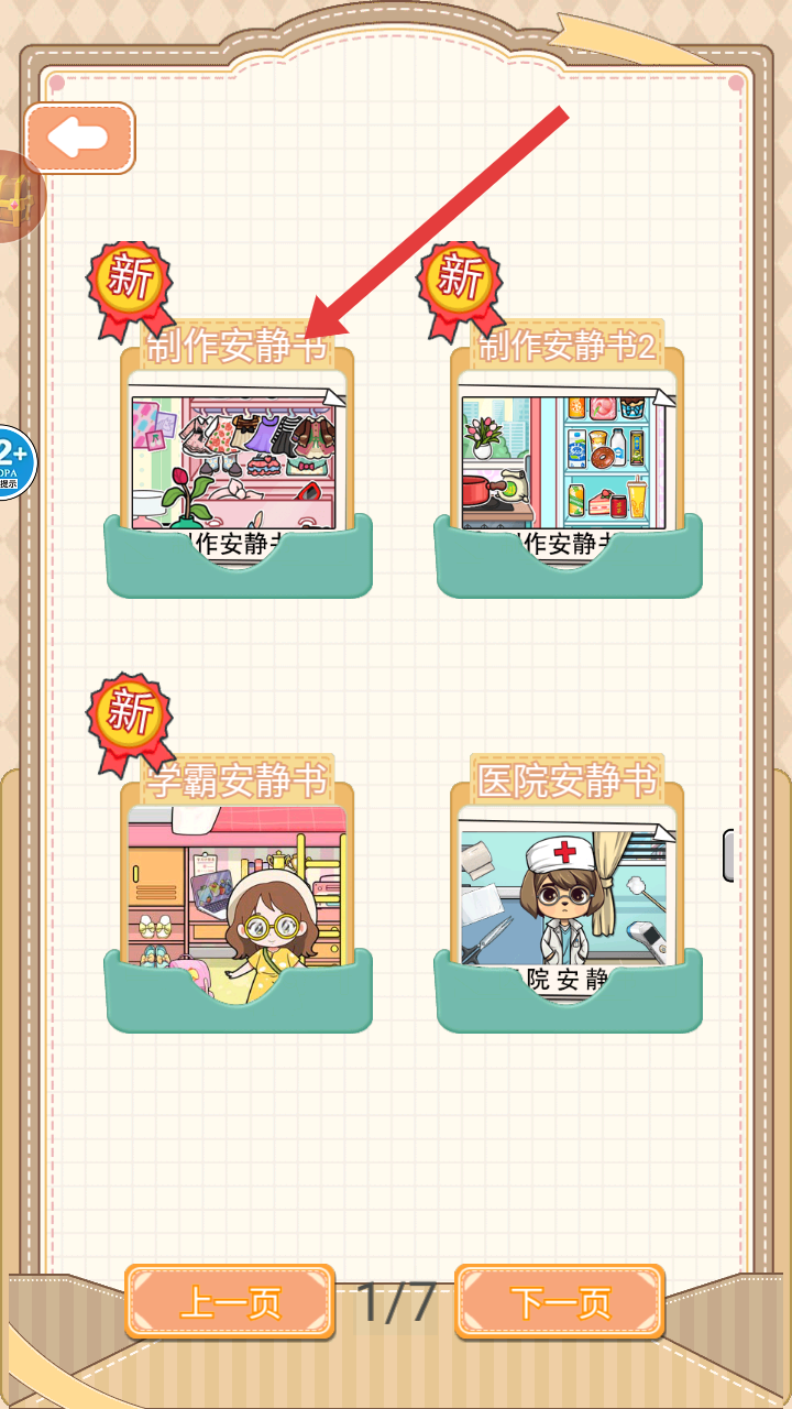 1、進入游戲游戲界面中可看到清潔收納手工DIY消除合成等不同板塊,選擇手工DIY相關內容,找到制作安靜書選項。