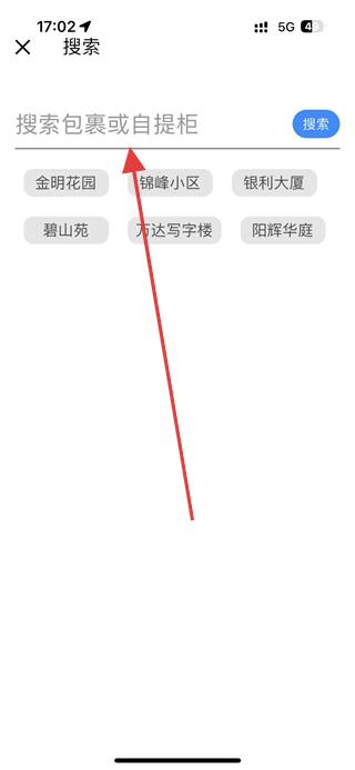 4、使用搜索功能輸入包裹或自提柜名稱,如錦峰小區等地點,查找對應的包裹或自提柜,方便包裹的查詢與自提,全面提升快遞業務的處理與管理體驗。