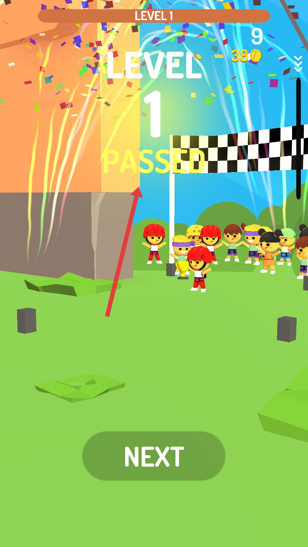 4、成功通過第一關后,界面顯示第一關通過,點擊下方綠色NEXT按鈕,即可進入下一關繼續挑戰。