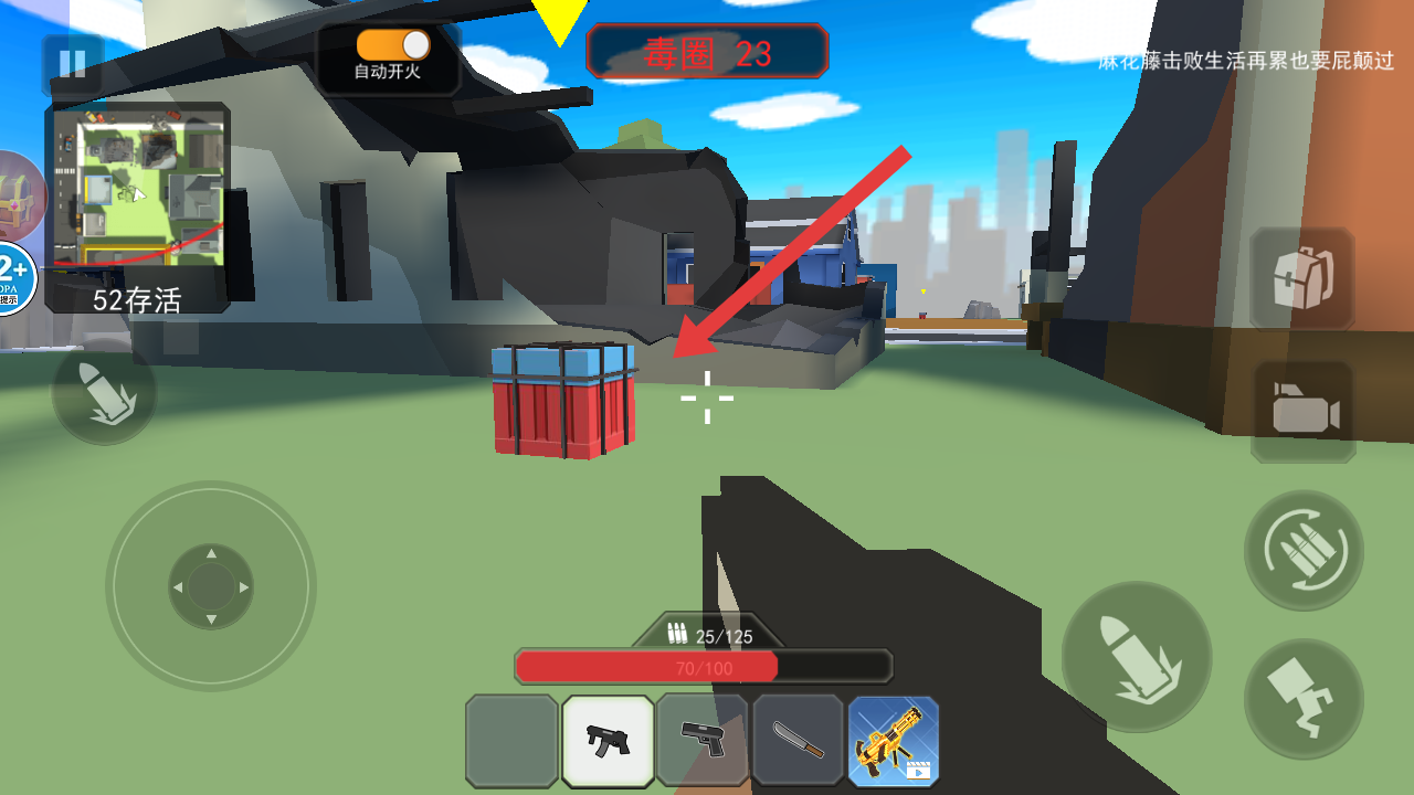 3、戰斗時看到紅色箱子,靠近并打開它,能獲取武器、彈藥等物資,提升自身戰斗能力。