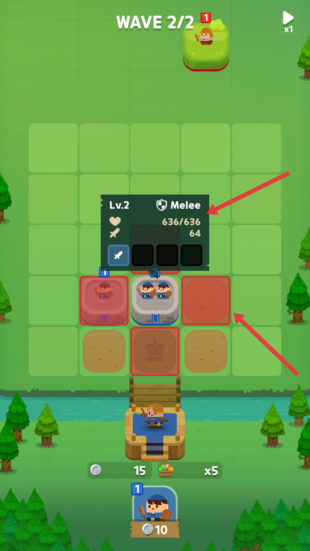3、合并方塊后,進入戰斗階段,會遇到敵人,操控增強后的騎士方塊與敵人戰斗,界面會顯示方塊的等級,血量等屬性。