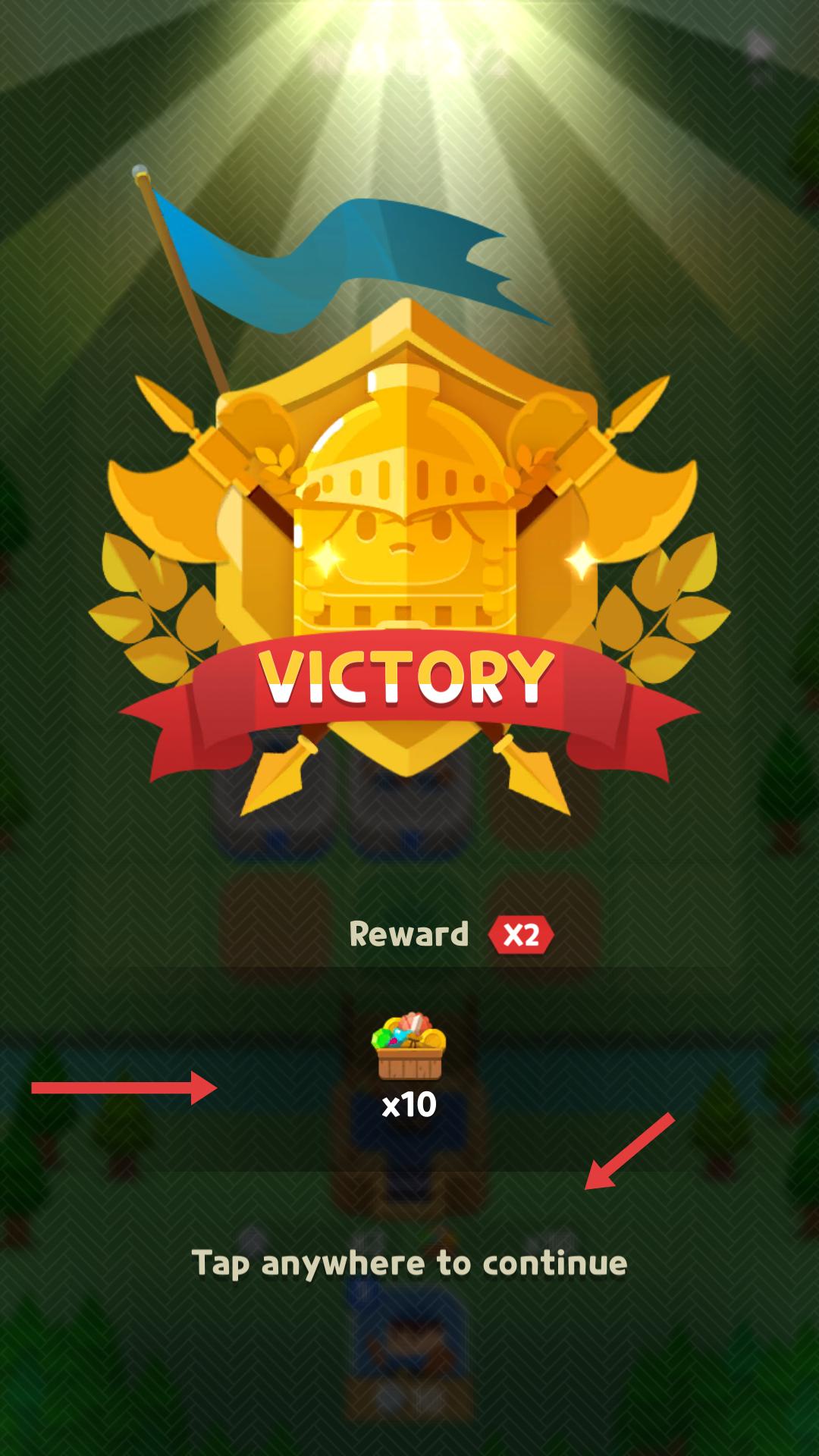 4、成功擊敗敵人后,會顯示VICTORY的勝利界面,獲得獎勵,點擊任意位置可繼續游戲,開啟新的關卡挑戰。