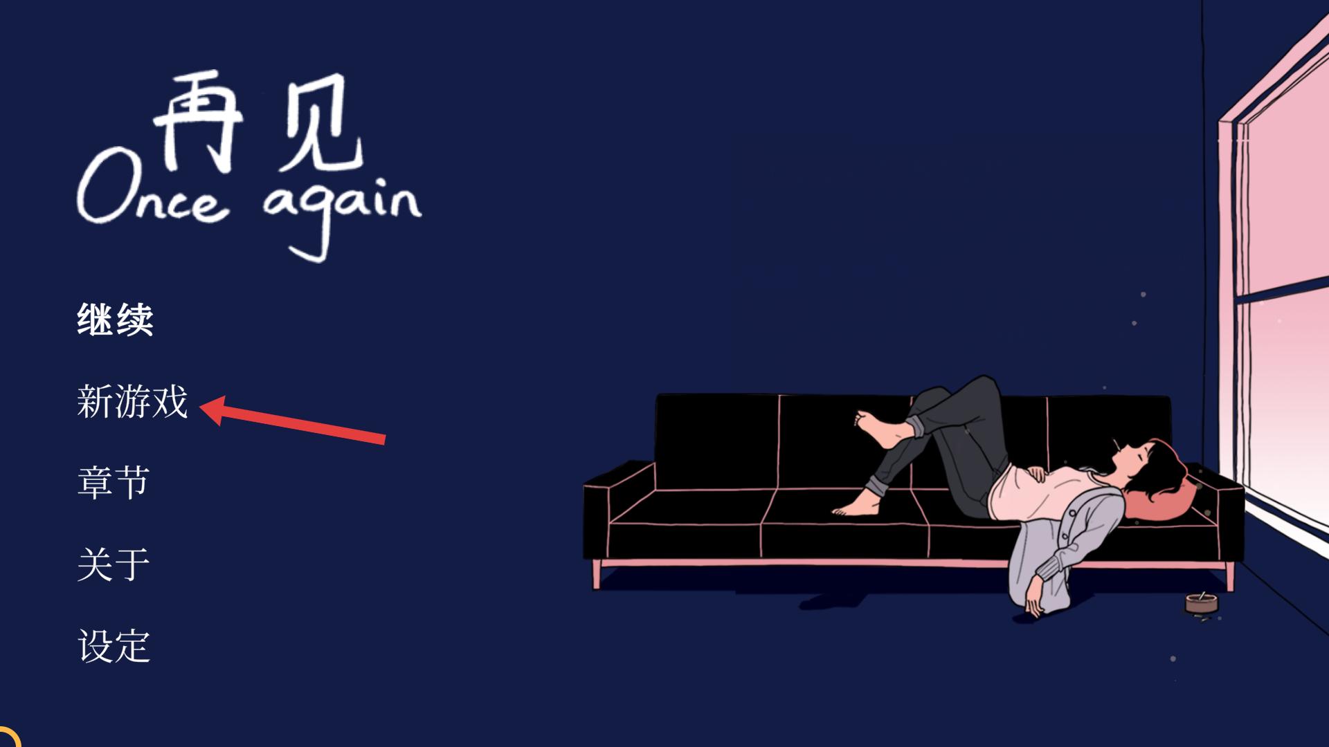 1、進入游戲界面,點擊【新游戲】,開啟再見Once again的故事之旅,跟隨劇情回溯過去。