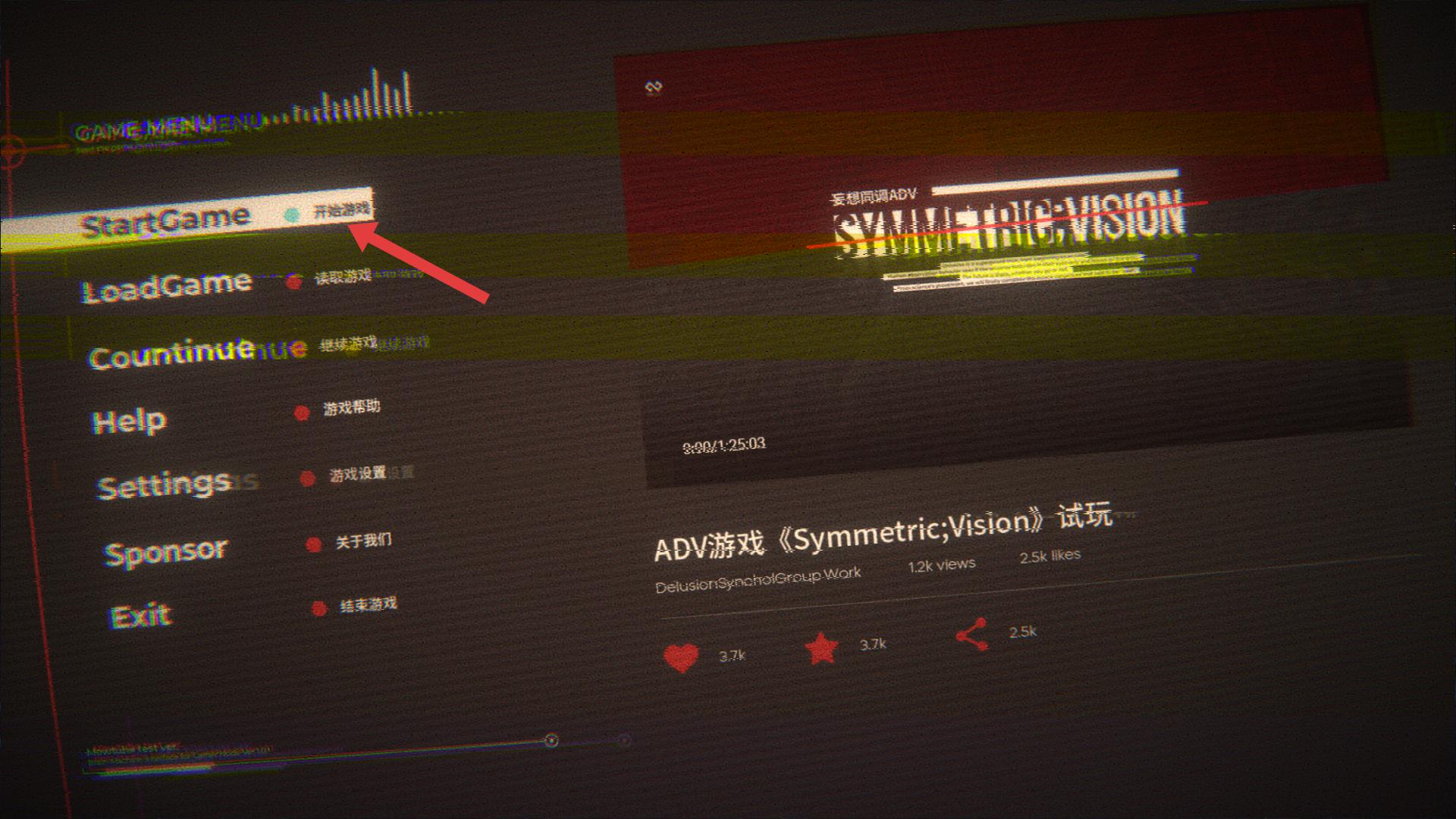 1、進入游戲菜單,點擊【StartGame 開始游戲】,開啟Symmetric Vision的冒險,踏入神秘劇情。