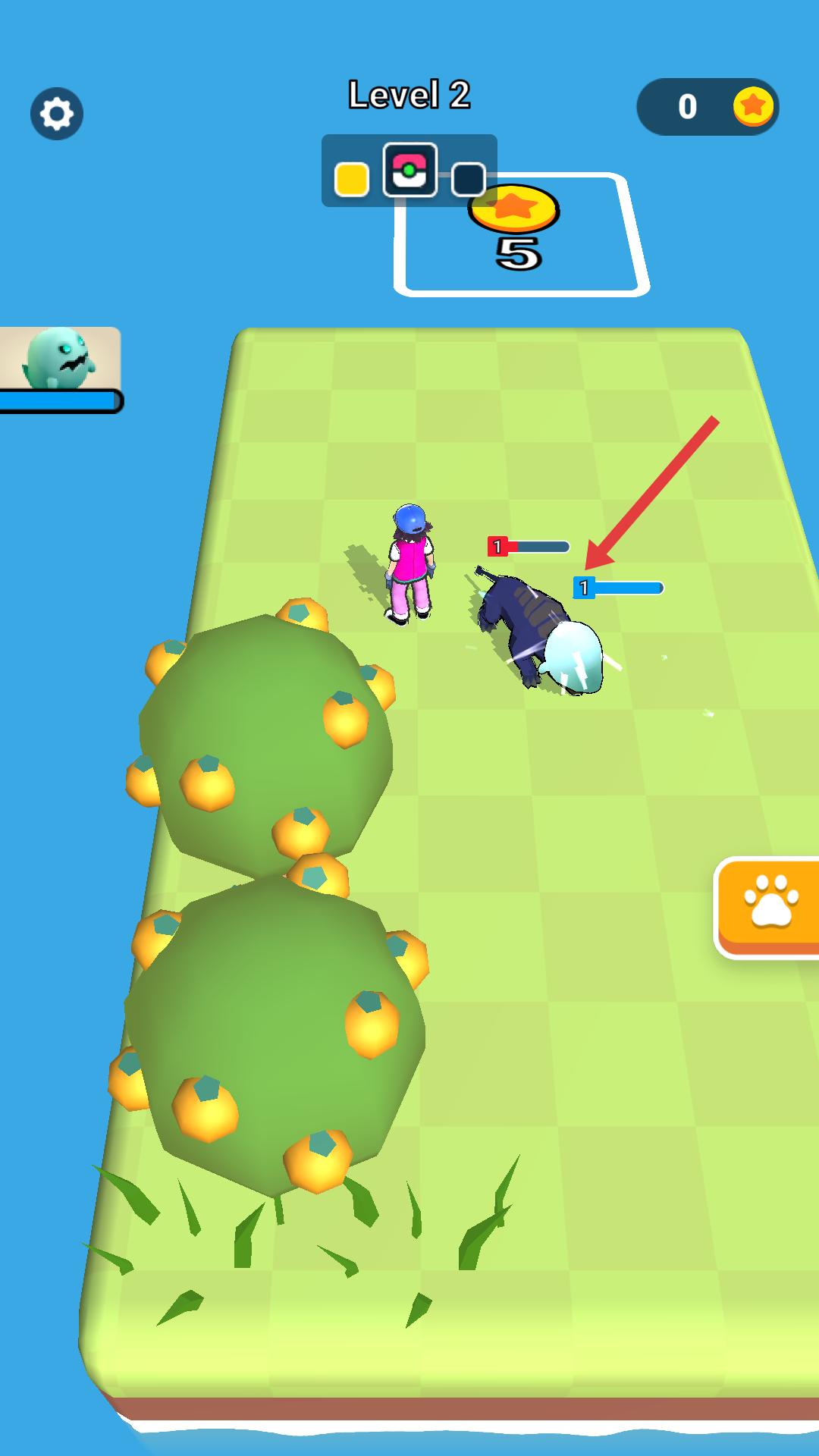 3、Level2中,引導角色靠近怪物,利用隊伍中的幽靈伙伴作戰,擊敗怪物獲取獎勵與進度。