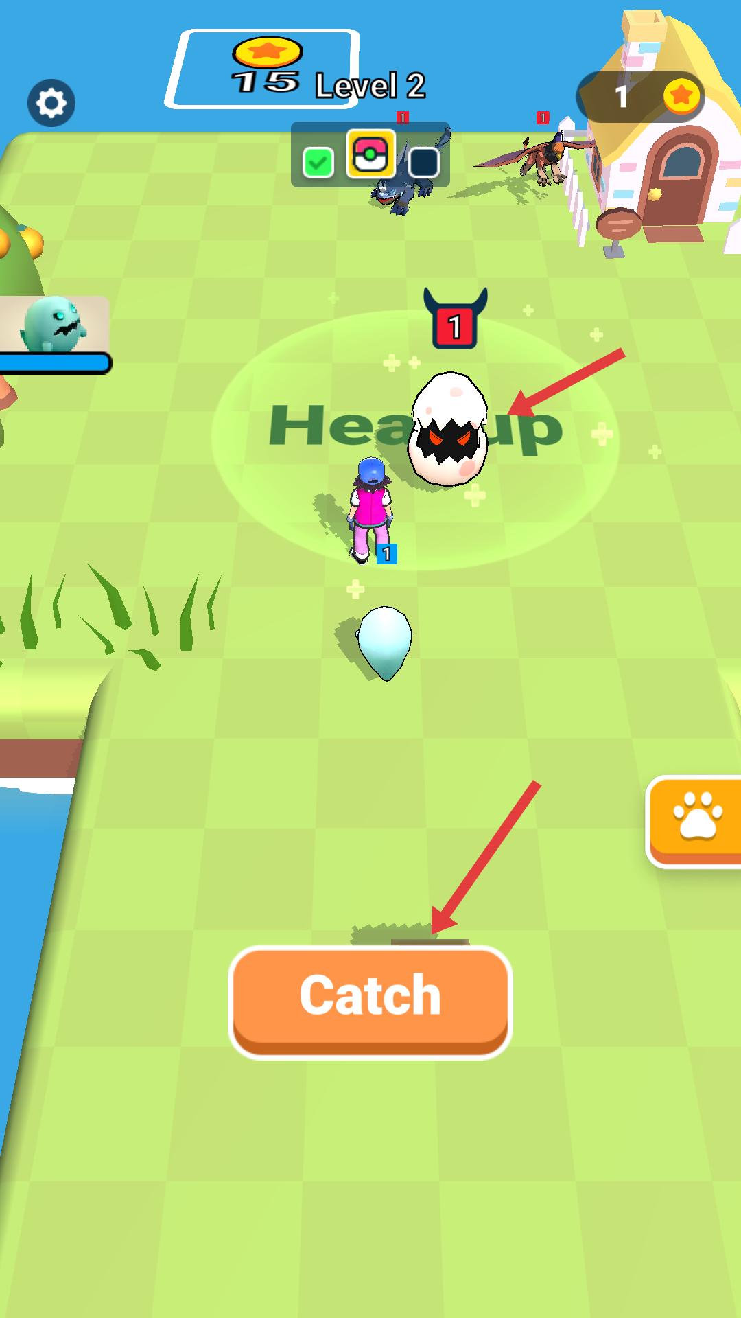 4、遇到帶1標識的蛋,點擊【Catch】按鈕嘗試捕捉,若成功可獲得新盟友,助力后續冒險。