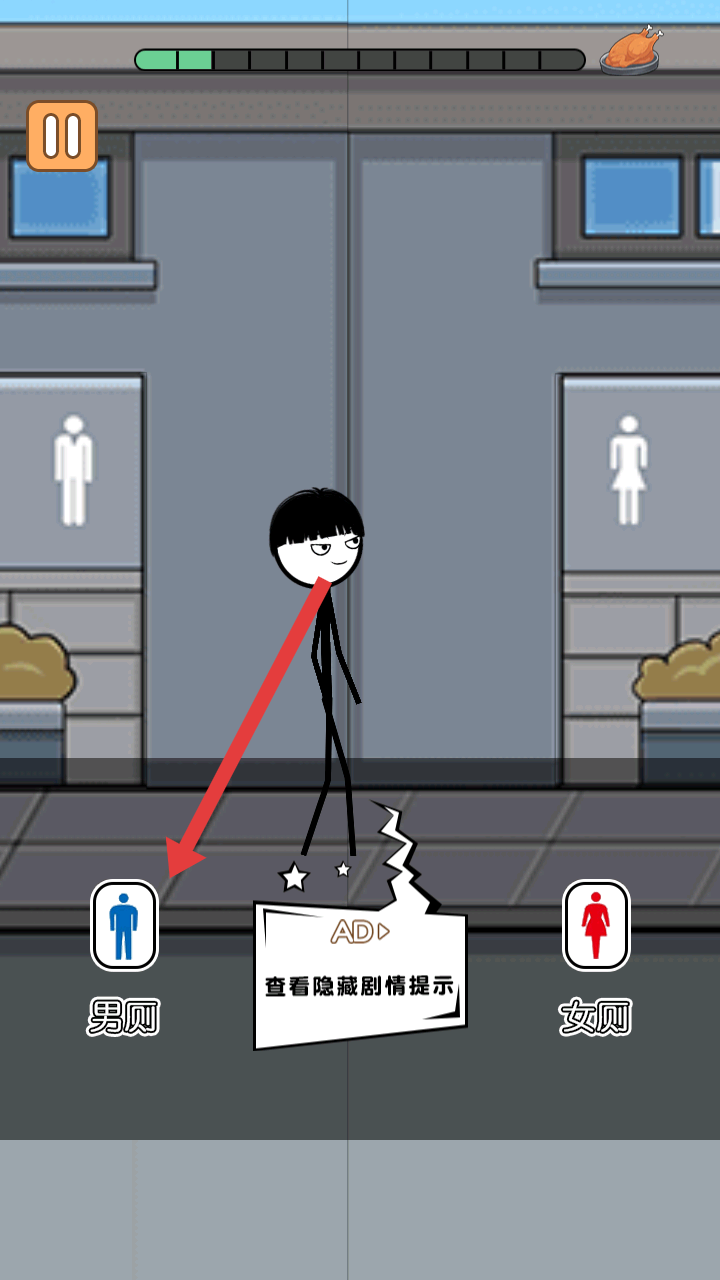 3、接著來到衛生間門口,男廁和女廁選項中選擇男廁,進入男廁躲避老板的追擊。