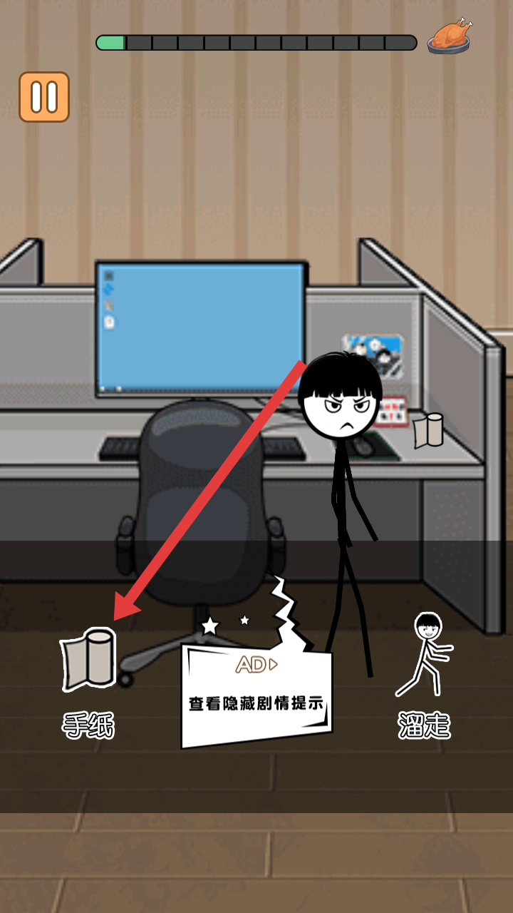 2、辦公隔間場景,面臨選擇,點擊手紙,為后續溜走做準備,遇到領導可以說去廁所。