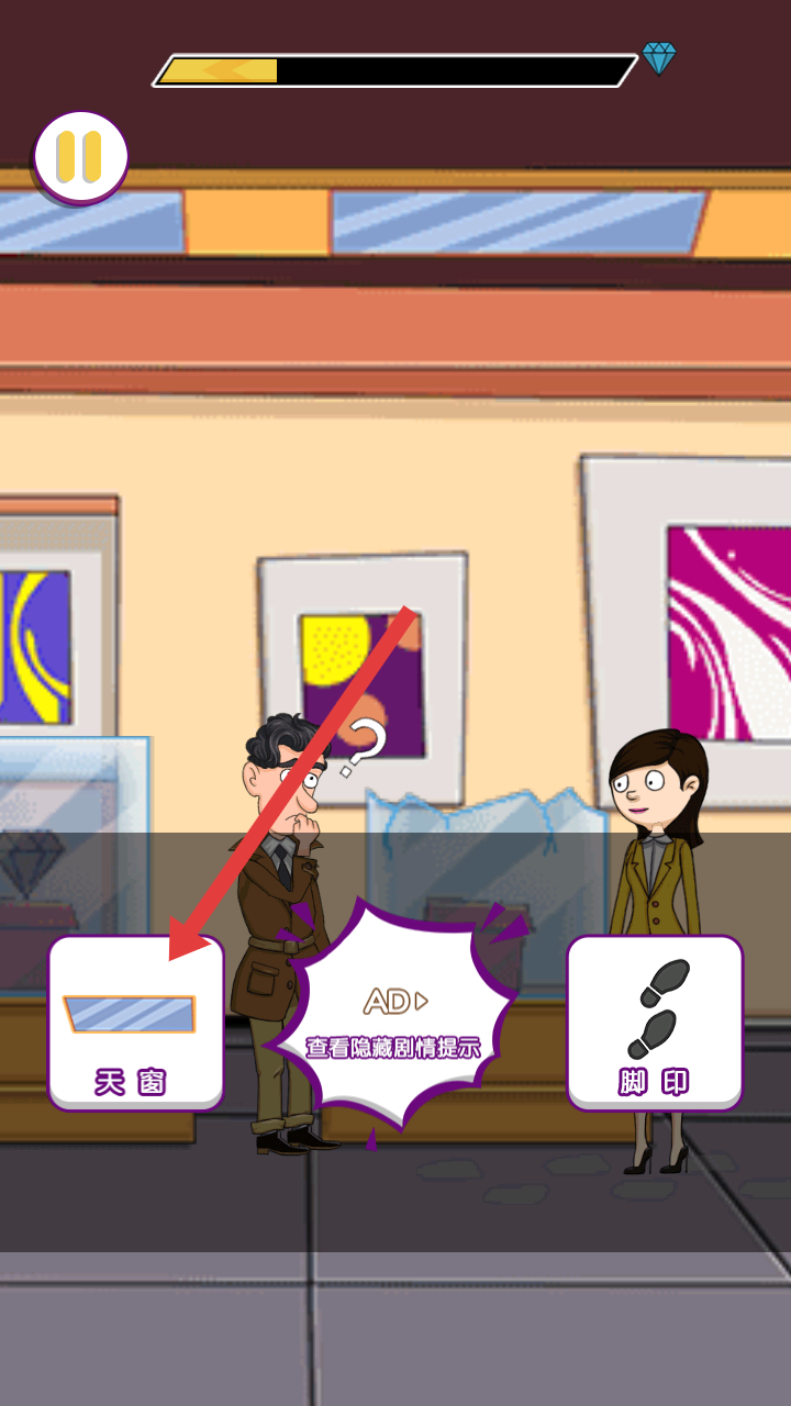3、進入展覽館內,還會有天窗、腳印等選項供選擇,選對助力解謎可以繼續往下玩,選錯了止步于此。