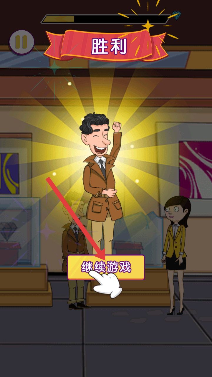 4、成功解謎后,界面會顯示勝利,點擊繼續游戲按鈕,可開啟后續的解謎挑戰,還可以繼續解密接下來的場景。