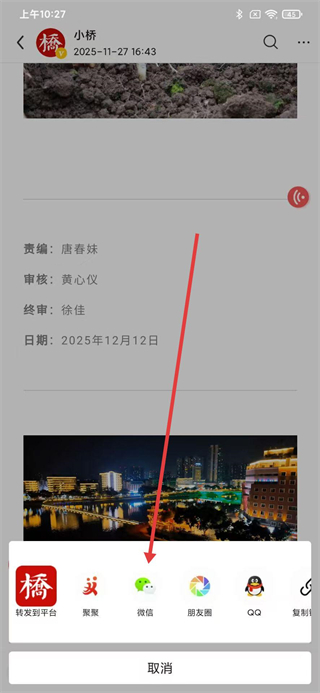 4、點擊分享按鈕后選擇微信朋友圈等分享渠道,確認分享內容無誤,完成分享。