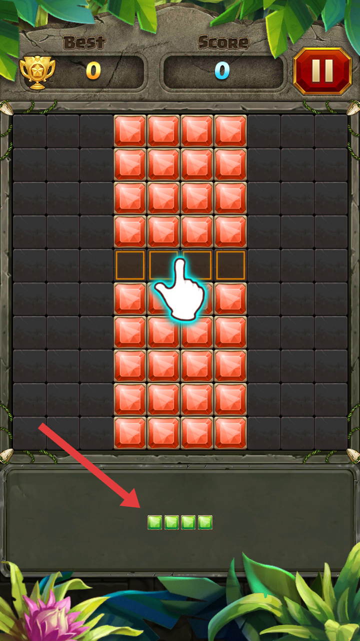 2、在游戲關卡中,屏幕下方會出現不同形狀的方塊,按照提示或自己的策略,將方塊拖動到上方合適的位置,填充空格。