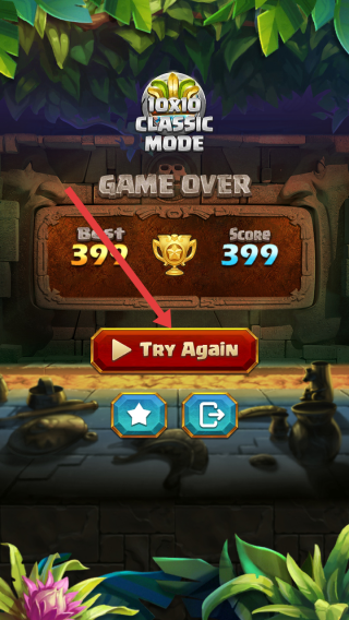 4、若游戲結束,出現GAMEOVER界面,可點擊TryAgain按鈕,重新開始一局方塊拼圖游戲,挑戰更好的成績。