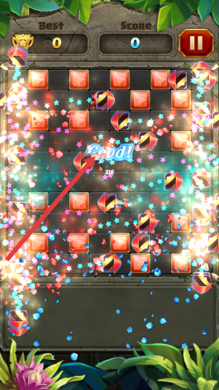 3、當成功填充一行或一列方塊時,會觸發消除效果,屏幕上會有Good等提示,同時獲得相應分數。
