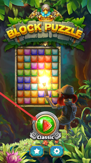 1、進入游戲主界面,點擊帶有Classic標識的綠色開始按鈕,開啟經典模式的方塊拼圖游戲。