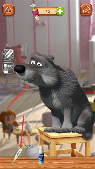 1、面對生病的狼,選擇合適的醫療工具,比如體溫計、噴劑等,對狼進行檢查和初步治療,緩解它的不適。