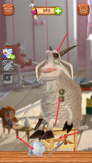 4、面對新的動物患者,比如山羊,查看它的病癥,選擇對應的醫療工具,對山羊的患處進行治療,讓它恢復健康。