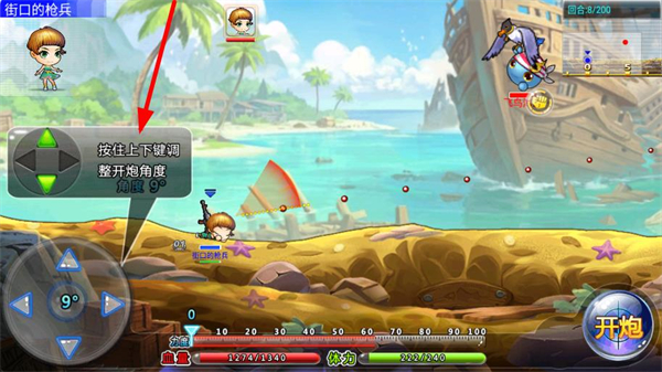 3、可按住上下鍵調整開炮角度,選擇合適的角度發射炮彈,以更精準地擊中敵方目標。