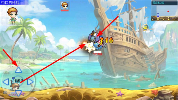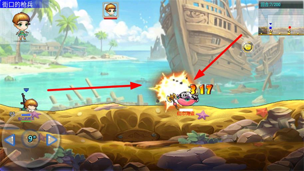4、調整角度后發射炮彈,能對如飛鳥海盜的敵方單位造成傷害,持續戰斗以擊敗更多敵人。