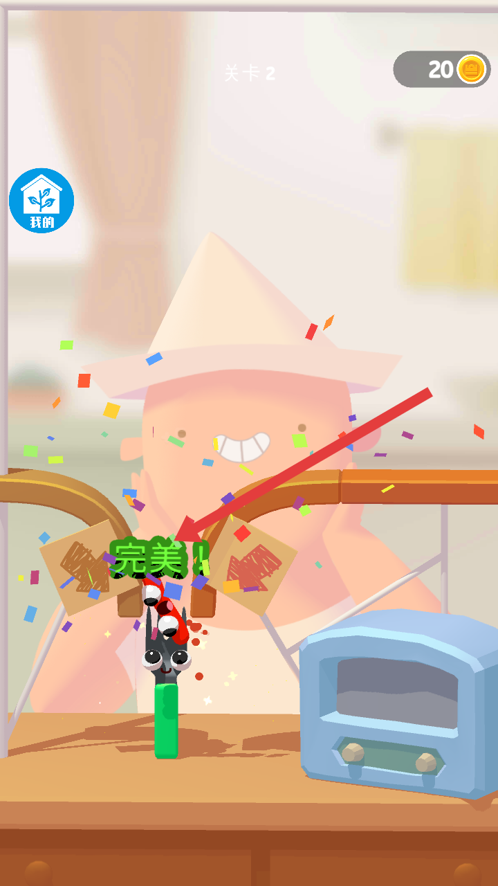 2、關卡2中繼續用叉子叉香腸,操作得當會出現完美的提示,還能獲得更多金幣,同時解鎖新的游戲地點。