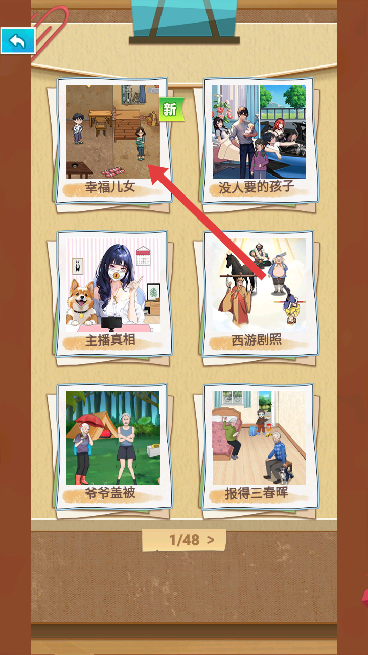 1、進入游戲,有幸福兒女、沒人要的孩子等多個主題關卡可選,點擊對應關卡開啟挑戰。